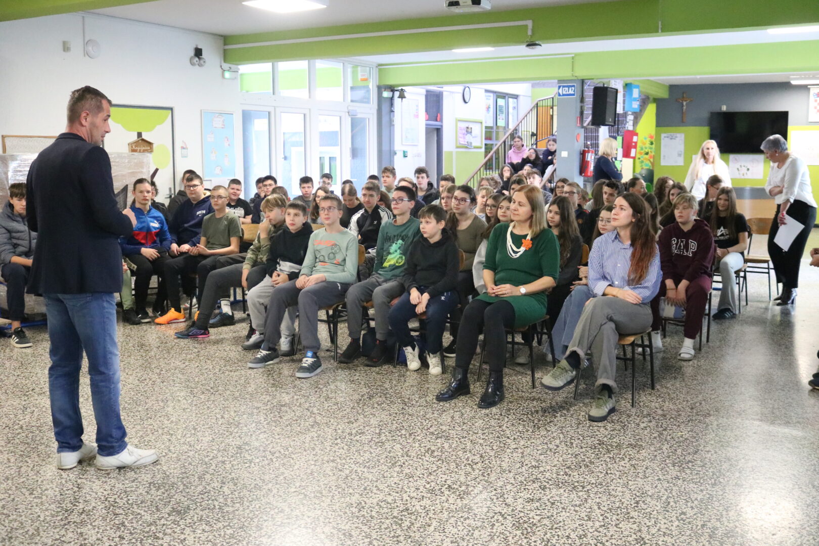 Marijan Gubina posjetio je našu školu, u četvrtak, 20. studenoga i učenicima sedmih i osmih razreda ukratko opisao svoj težak životni put koji mu je, uz Božju pomoć, dao snage promovirati mir i oprost živeći svoju nit vodilju:” ČINI DOBRO KAKO BI TI SE ISTO ŠTO PRIJE VRATILO”.