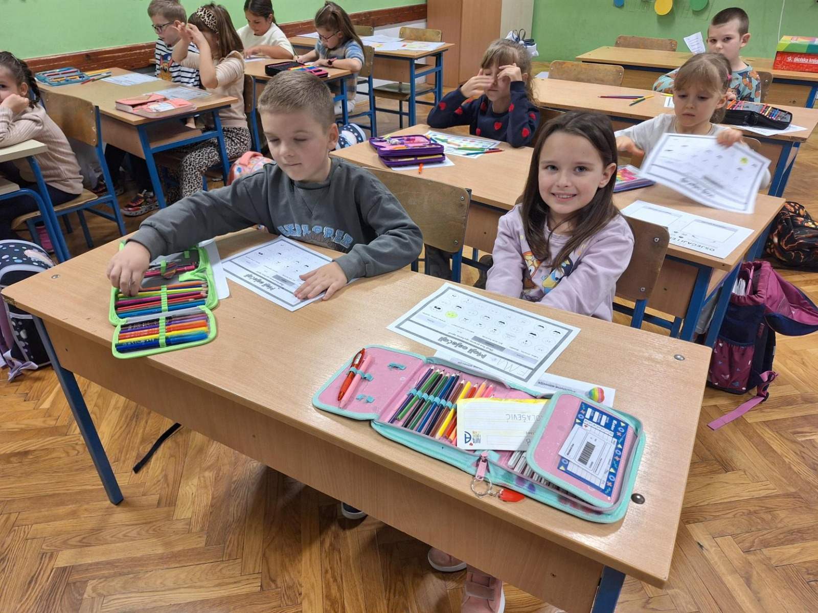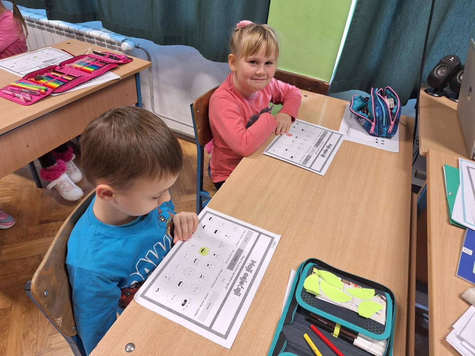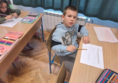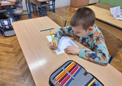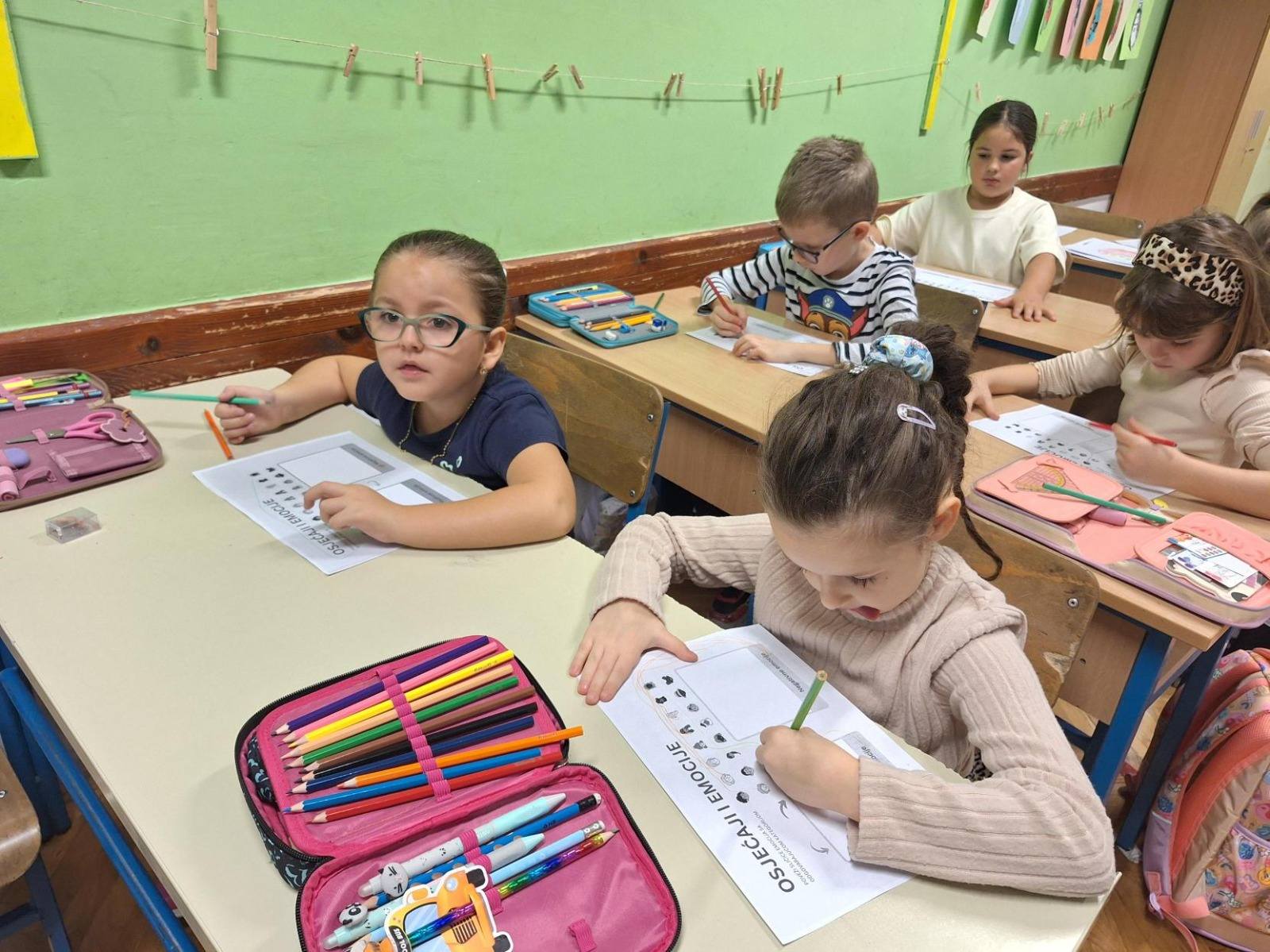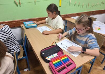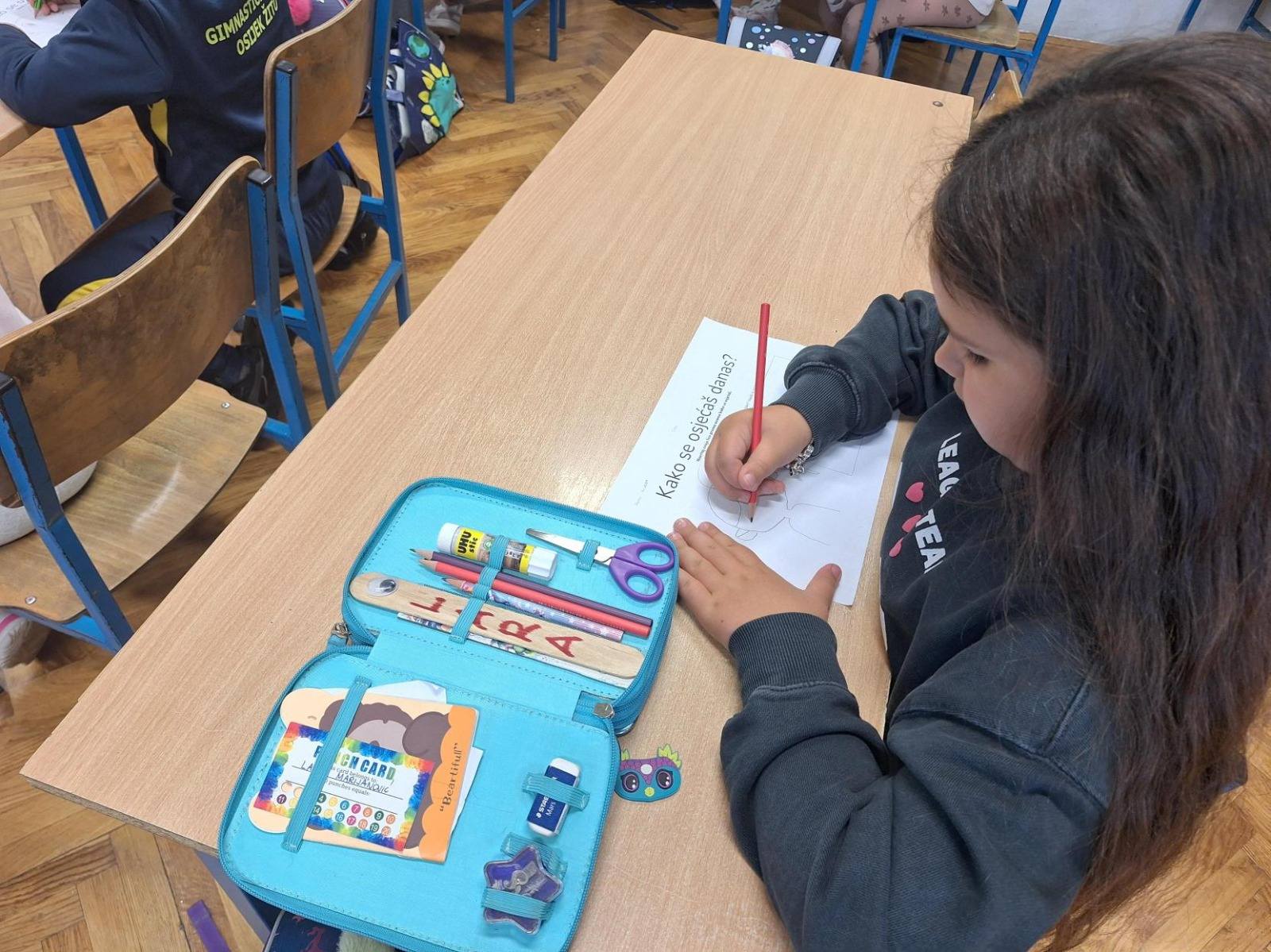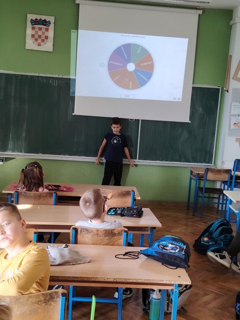 Učenici 1.b razreda su sa svojom učiteljicom Anom Šili istraživali svijet emocija. Pogledali su edukativni crtić o različitim osjećajima te su naučili korisne savjete kako se nositi s negativnim emocijama. Svaki učenik je nacrtao svoj profil i označio kako se trenutno osjeća. Također su otkrili kako boje mogu izražavati različite emocije, a na kraju su igrali zabavnu igru – Bingo o emocijama.