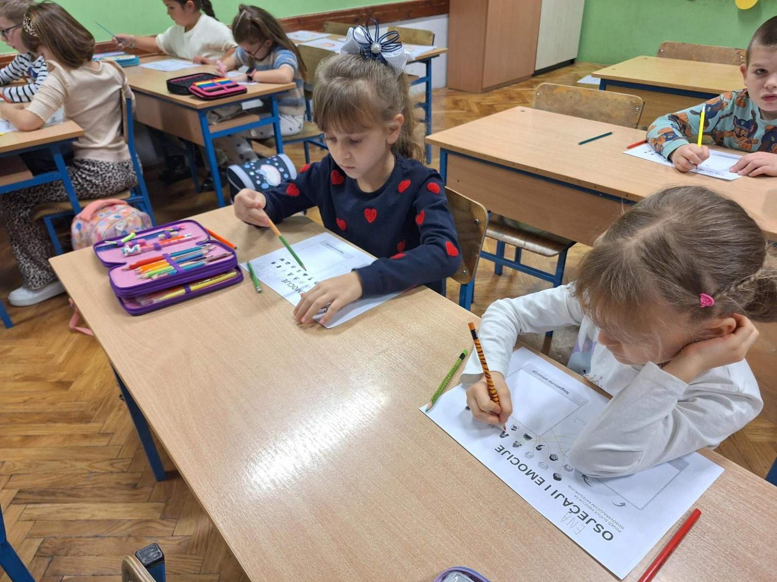 U 3.a razredu učenici su sa svojom učiteljicom Renatom Klarić razgovarali o tome što su emocije, kako ih prepoznati kod sebe i drugih te kako si međusobno možemo pomoći. Izrezali su srca od papira na koja su napisali važne stvari u svom životu i zatim ukrašavali te radove. Nakon što su zamijenili srca sa svojim prijateljem iz klupe, promatrali su što je njima bitno. Sljedeći korak bio je iznenađujući – učiteljica je zamolila učenike da zgužvaju srce prijatelja. Učenici su osjećali ljutnju i tugu jer su njihovi trudom napravljeni radovi uništeni. Pokušavali su izravnati srca, ali nisu uspjeli vratiti izvornu formu. Zatim su zajedno razgovarali o tome kako se naši prijatelji osjećaju kad ih povrijedimo riječima ili djelima nepoštovanja. Zajednički su zaključili da moraju misliti jedni na druge i poštivati se.