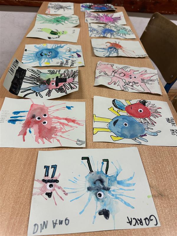 Učenici 2.a i 2.b razreda sudjelovali su na radionici psihologinje Drage König pod nazivom „Strašni strah“. Tijekom radionice razgovarali su o svojim emocijama i strahovima. Učenici su se hrabro suočili sa svojim strahovima. Maštom su oblikovali svoje strahove, odabrali im boju, a zatim ih “otpuhali” slamkom. Dodali su im ruke, noge, lica i šašava imena, pretvarajući ih tako u smiješne i manje zastrašujuće strahove.