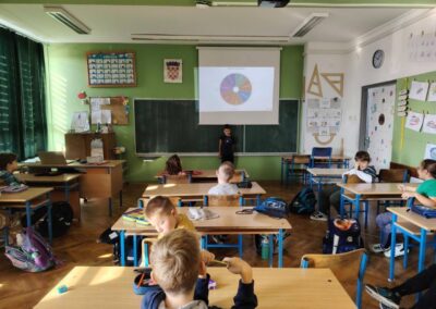 Učenici 6.b razreda su pokazali svoju kreativnost izrađujući vlastiti kotač emocija na radionici psihologinje Drage König. Na njemu su na jedinstven način dočarali vlastite osjećaje sreće, tuge, ljutnje, ponosa, uzbuđenja i straha. Svaki kotač je poseban i drugačiji te nas podsjeća na ljepotu različitosti.