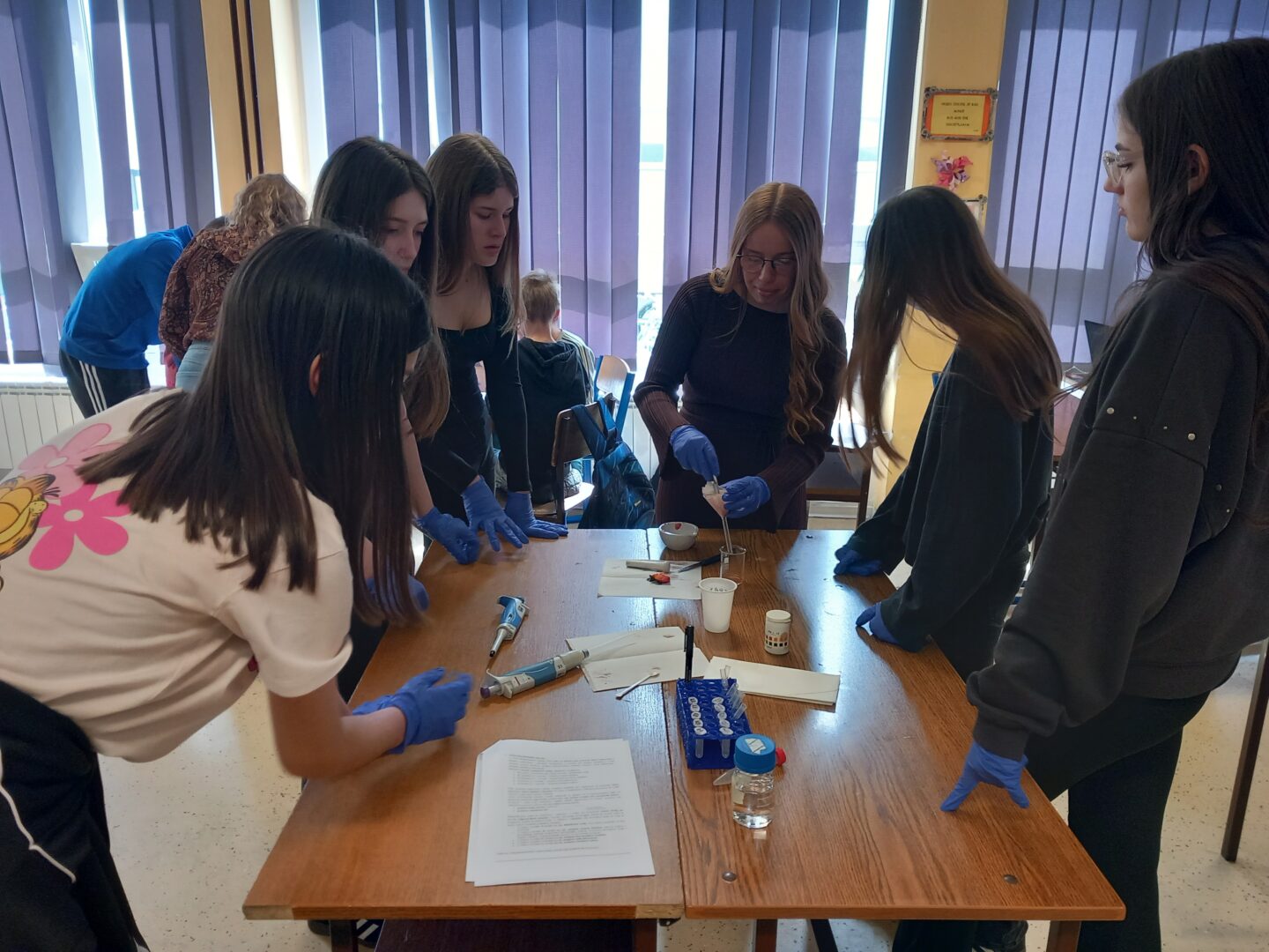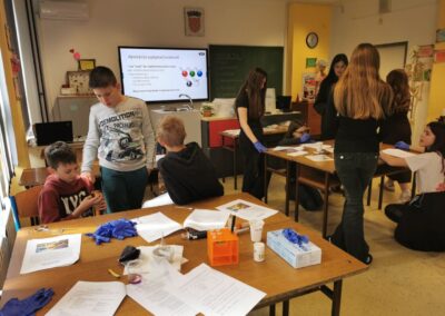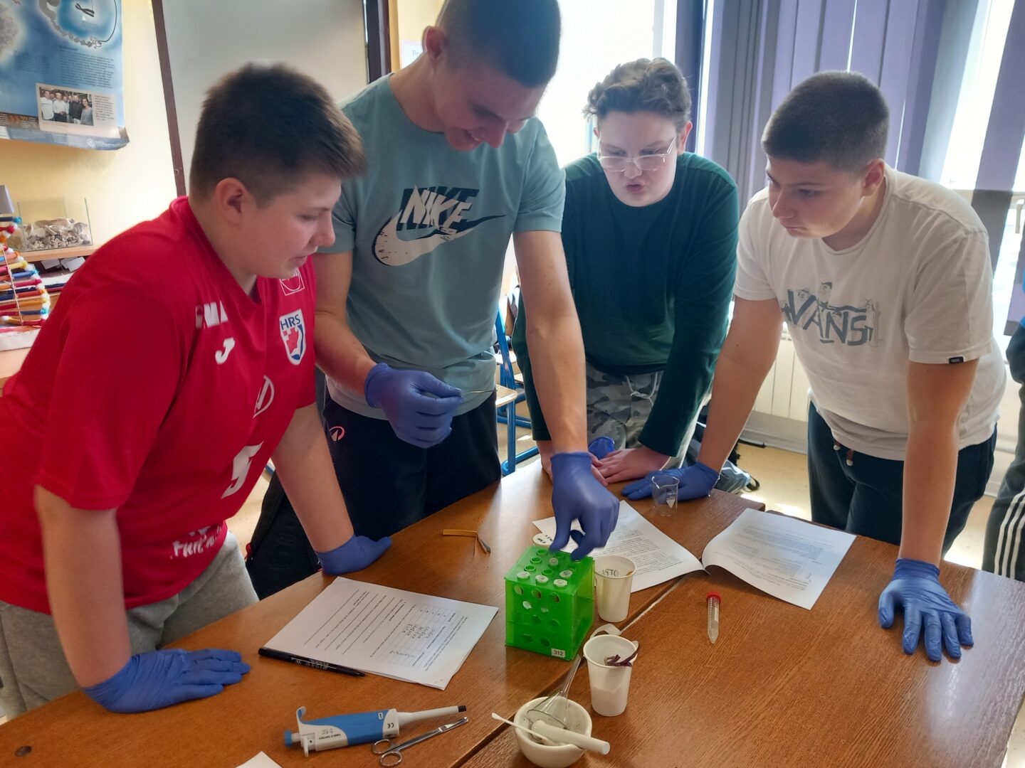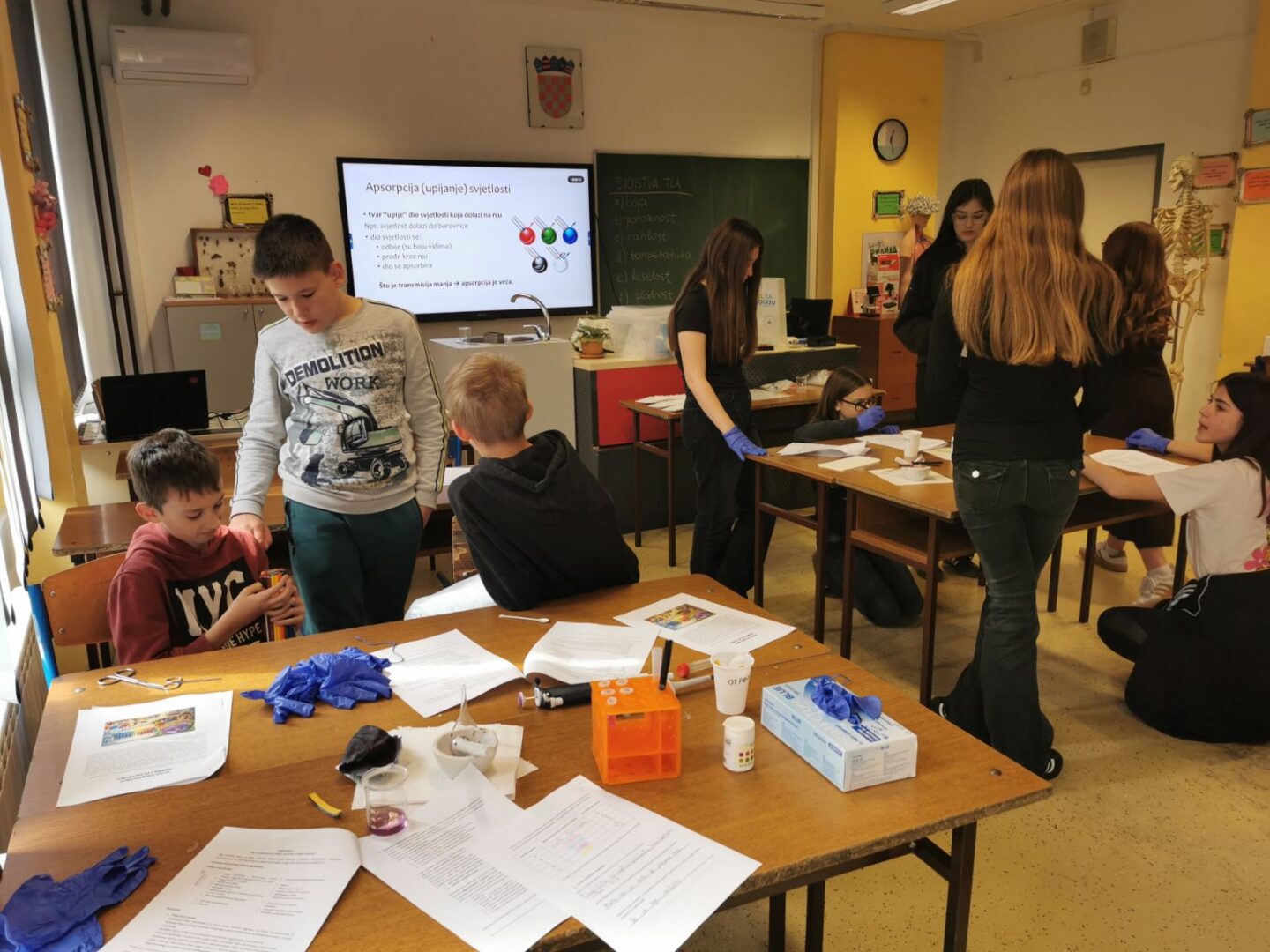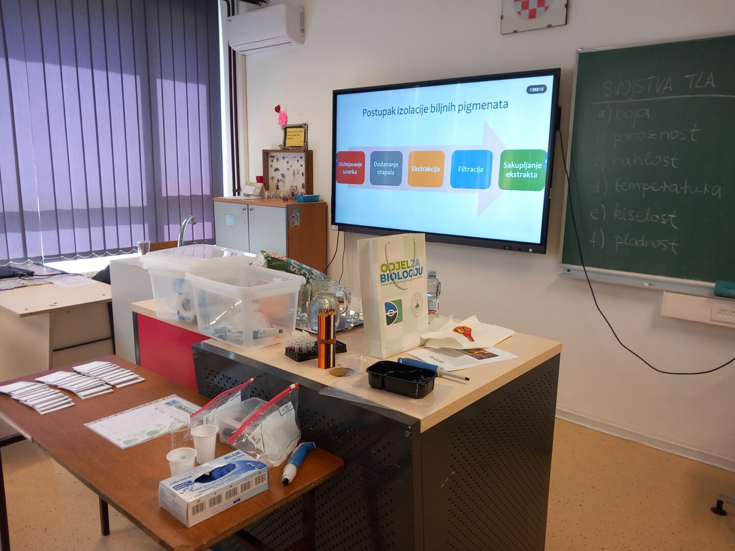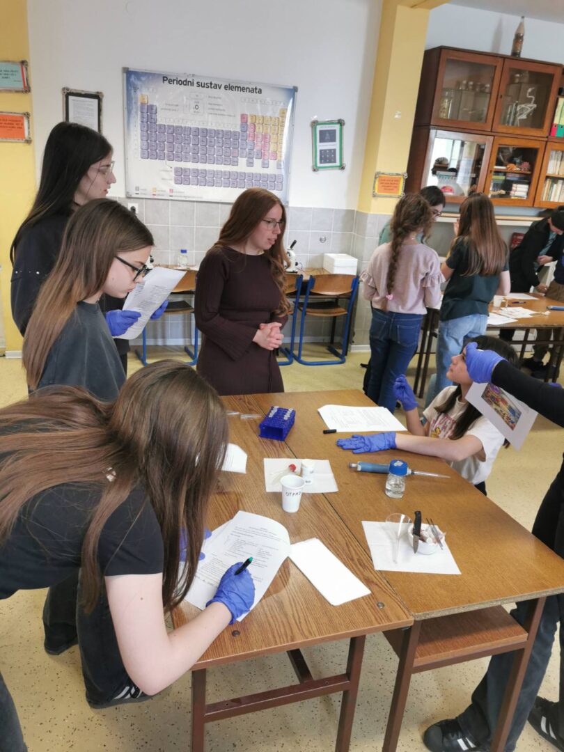 U goste su nam došle Nikolina Sabo, viša laborantica Odjela za biologiju i studentica Leonarda Sudar. Donijele su kutije pune zanimljivih potrepština i pribora za interaktivnu radionicu
