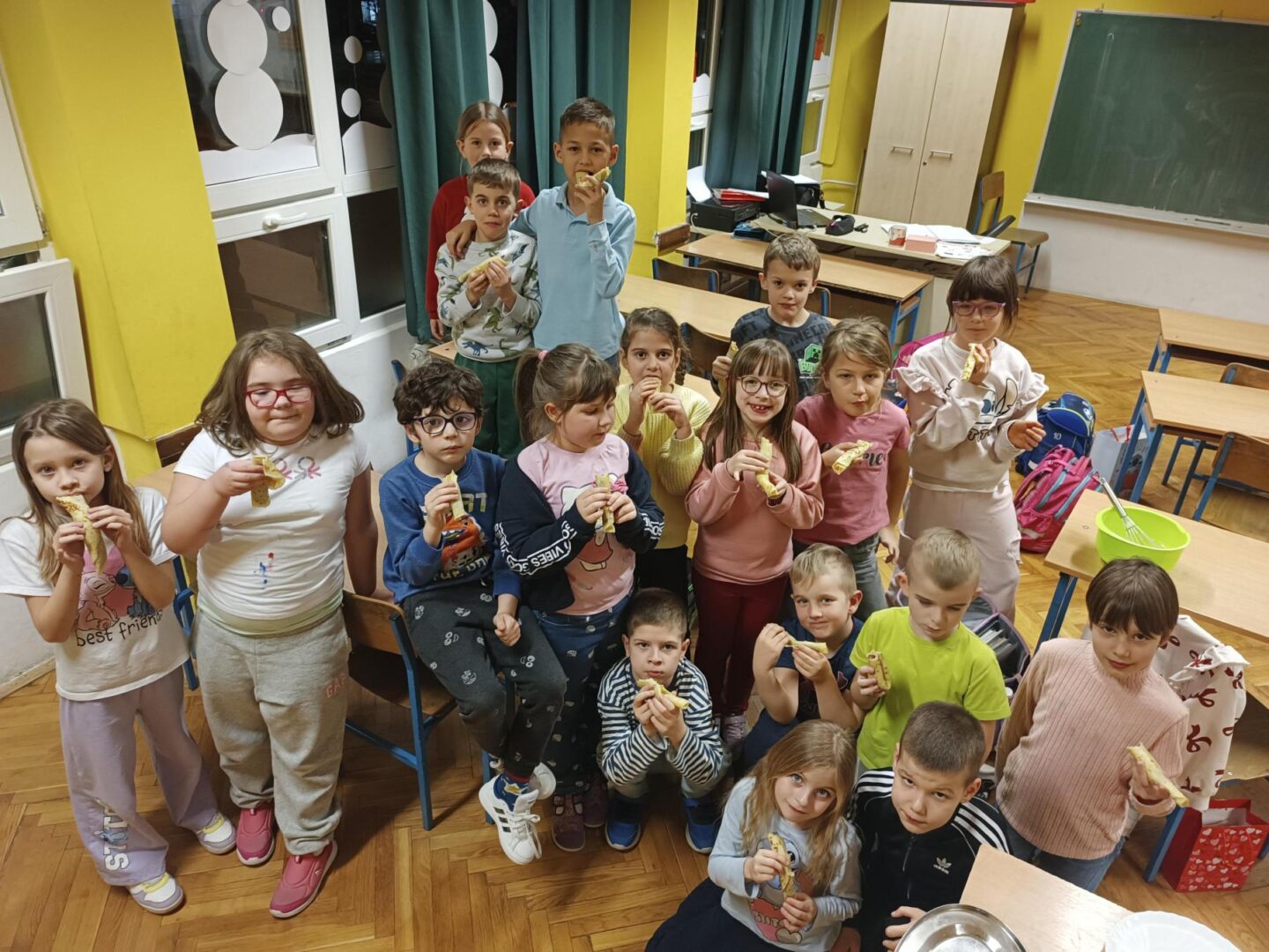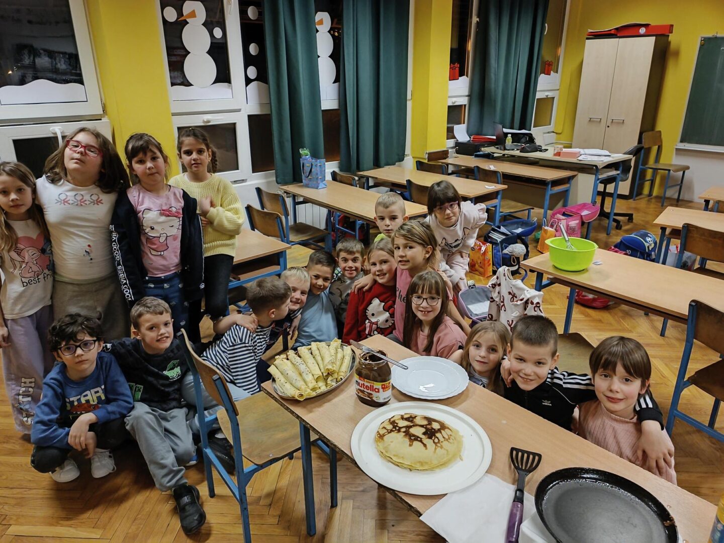 Dana 16.veljače 1.a razred obilježio je Svjetski dan palačinaka. Iako se tradicionalno taj dan obilježava dan prije Pepelnice, mi smo taj dan obilježili na Satu razrednika. Taj dan zapravo predstavlja tradicionalni dan za uživanje u palačinkama, a povezuje se s utorkom prije korizme, kao posljednji dan za uživanje u obilnoj hrani. Tako su i naši prvašići uživali u ukusnim palačinkama, naravno s nutelom.